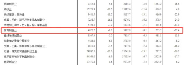 1-9月全国家具制造业利润235.7亿元,同比下降22.4%