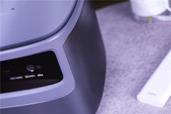 其次就是这款产品的外观设计。曾经有一段时间我对这类电子产品的外观并不那么在意,因为更注重它的硬件和功能性。但当你把它置放到实际的家居环境中时,如果没有精心挑选使之与家具风格融合,那么很可能就会让你感觉哪里不对劲,而且时间越久这种感觉会越强烈,甚至让你有一种每次使用后都想把它收起来的冲动。而这款坚果J10整体方形外观搭配弧形线条,上顶面覆盖2.5D类肤感金属光泽玻璃,非常有设计感,再加上阳极氧化铝网面,使整体看起来很别致,但也很协调,这样就能更轻易的与各种家居风格相融合。