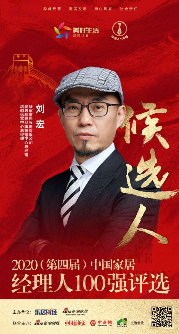 新浪家居讯 由乐居财经、新浪家居主办,新浪财经、中国企业家、中房网、中物研协联合主办的“行稳致远——2020(第四届)中国家居经理人评选”网络报名正式启动。10月28日,顾家家居副总裁兼品牌管理中心总经理、店态运营中心总经理刘宏先生成为“2020中国家居经理人100强”候选人。