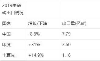 印度:产量增长10.6%,出口增长31%2019年,印度继续保持其全球第二大瓷砖生产国的地位,总产量从11.45亿㎡增长至12.66亿㎡,提升了10.6%。产量增加的主要原因主要是受出口带动,并不是受国内消费所驱动,国内的瓷砖消费仅增长了4%,为7.80亿㎡。2018年,印度瓷砖出口增长了20%,至2.74亿㎡,并在2019年得到进一步增长,为3.60亿㎡,增长31.4%,印度由此成为仅次于中国和西班牙的世界第三大瓷砖出口国。