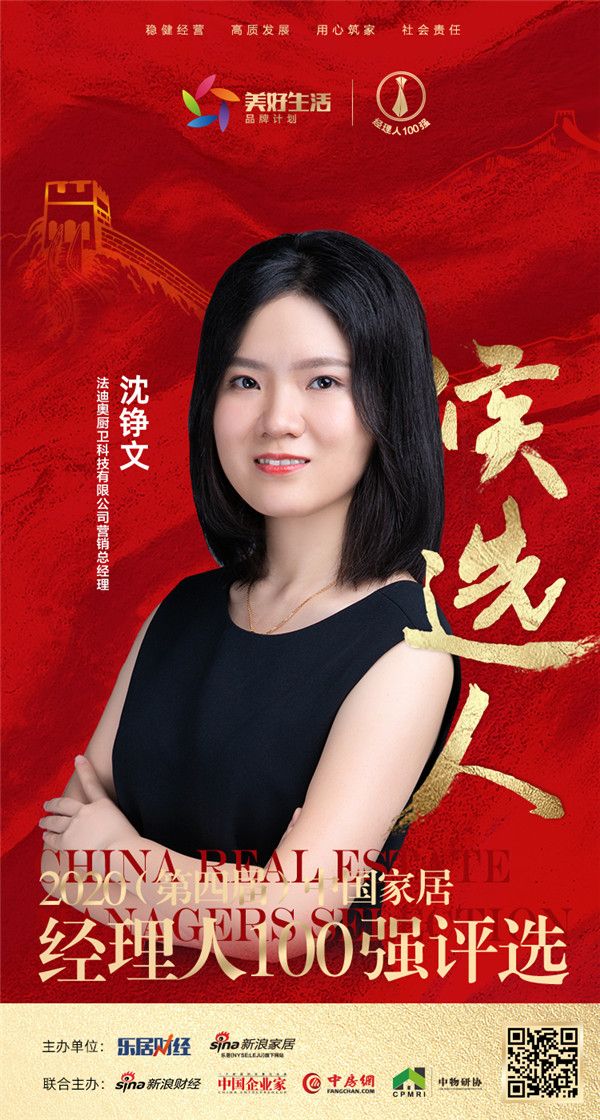快讯:广东法迪奥厨卫科技有限公司营销总经理沈铮文获提名参选2020中国家居经理100强