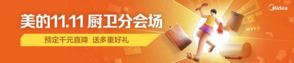 此次美的商城厨卫分会场双十一大促,10月31日24:00前预售期间有更多优惠,还没上车的千不要错过。快快关注美的商城微信公众号,或下载美居app进入美的商城厨卫分会场抢先预定吧,价保双十一,早买早享受!