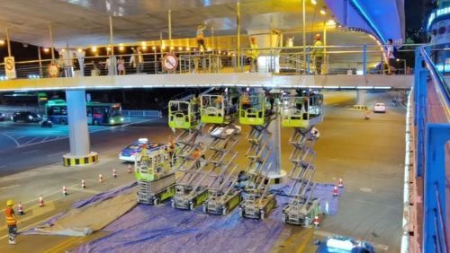 规范整洁,促进文明,从施工开始到施工结束,经典品牌厂家和项目组一道,真正落实规范施工、挂外网施工、设立警示标志施工、严格施工工艺并确保基层、底漆和面漆工艺到位,并在桥面涂装时在地面铺设塑料薄膜,防止涂料对地面的二次污染,从而保证了城市的干净卫生和文明施工。