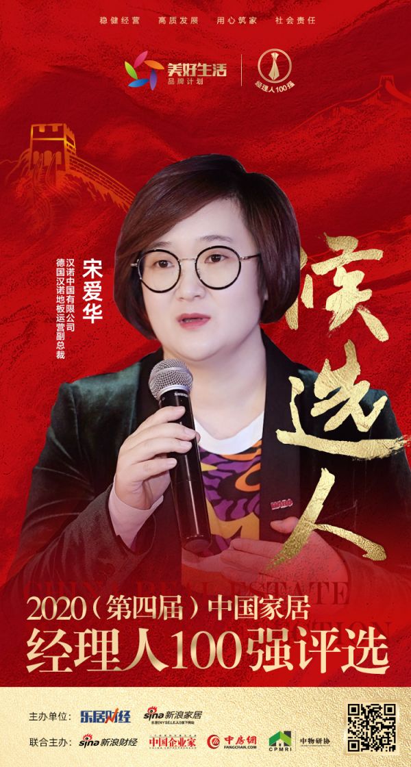 快讯:汉诺中国有限公司运营副总裁宋爱华获提名参选2020中国家居经理人100强