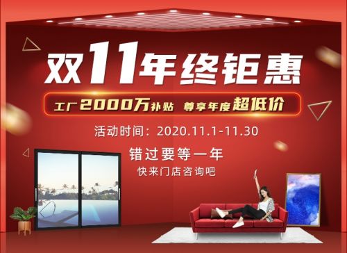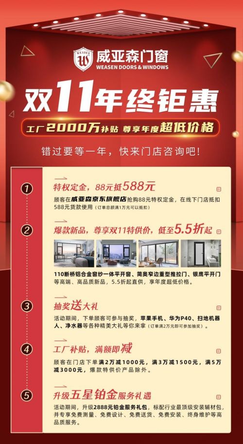 五大优惠福利重磅出击,威亚森门窗营销火力全开,引爆2020双十一!