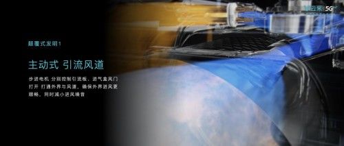 颠覆式发明1:主动式引流风道。步进电机分别控制引流板、进气盒,使风门打开,打通外界与风道,确保外界进风更顺畅,同时减小进风噪音。