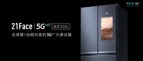 早在去年3月的中国家电及消费电子博览会上,云米便率先推出全球首台5G大屏冰箱,探索5G和家庭物联网在冰箱上的应用。这次2020 云米5GIoT新品发布会上,云米再次带来全新冰箱产品:全球第一台刷抖音的5GIoT大屏冰箱——21Face云米 5GIoT 大屏冰箱(法式520L),不仅为用户带来更丰富流畅的厨房智能场景体验,更标志着5GIoT家庭智能化进入全新阶段。