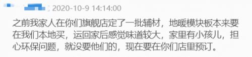 日前,网络上一位业主在购买地暖保温材料时的聊天记录引来很多装修朋友的点赞。这位业主原本在当地购买了一些保温材料准备安装地暖,但买回家后发现保温板有味道,由于家里有孩子,担心环保问题,于是果断购买了更环保的地暖保温材料。