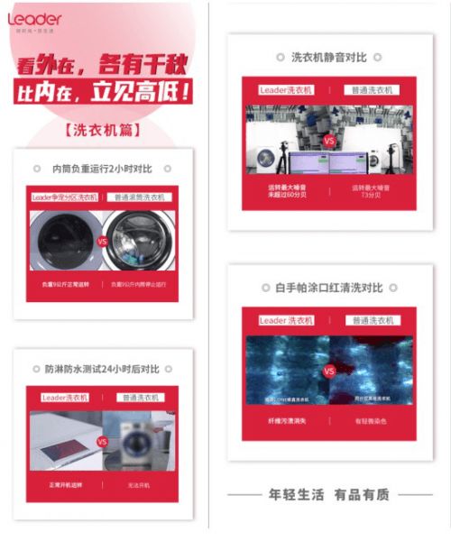 那有没有好看又实用的洗衣机呢?最近Leader洗衣机发布了一组对比海报,展示出其优越性能,不仅外观时尚,同时品质过硬,更为年轻人带来了全场景洗护解决方案。