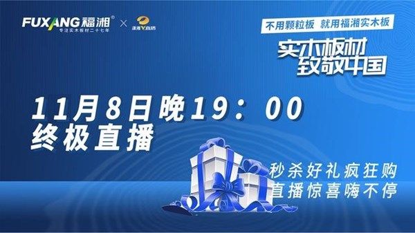 “从诗意之春,到温情金秋,我们怀揣梦想,见证彼此成长,一路相伴,携手与共,感恩有您。”为答谢新老顾客,福湘板材推出专享福利,2020年10月8日-11月8日,福湘板材以“实木板材 致敬中国”为主题开展四省联动活动,4场直播联动,众多钜惠福利引爆双十一。