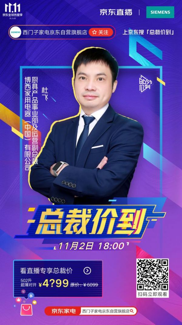 西门子家电总裁价到京东直播,多重豪礼引领品质新生活!