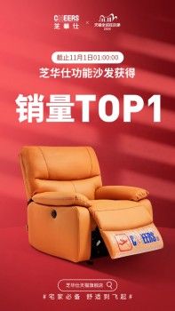 截止11月1日01:00:00芝华仕功能沙发获得销量TOP1。