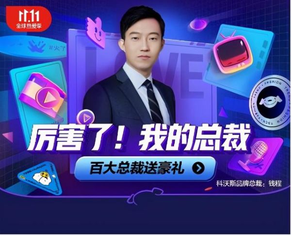 为打响11.11战役的开门红,当日京东邀请了科沃斯、海尔、露华浓、先锋电器和蔓珠五大品牌于11月1日20:00-22:00举行一场跨品牌直播活动,五大品牌跨界合作,总裁亲临现场,共同点亮"BOSS放价"。总裁们天然有品牌背书效果,除了有价格的绝对优势,代表亲自向消费者下"保证书",直播间的产品做更严苛的检查与更足够的准备。科沃斯机器人CEO钱程联合海尔洗衣机电商总裁鄢伟杰、露华浓品牌总裁韩强、先锋电器总裁张永生、蔓珠创始人兼CEO奚冰同时亮相,放出限时抄底特价,并直播间将超千万元赠品回馈直播粉丝,真正实现"BOSS放价",共同拉开双11购物狂欢节的大幕!