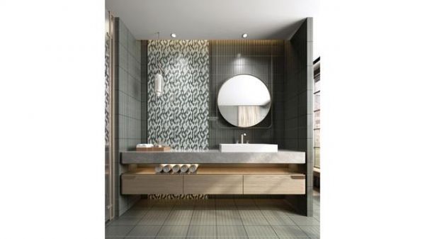 石材贴片与带有纹样设计的贴片混合搭配,令上面这款马赛克产品别具美感,这类马赛克元素可以在墙面的局部位置创造出视觉的焦点,成为空间设计的点睛之作。