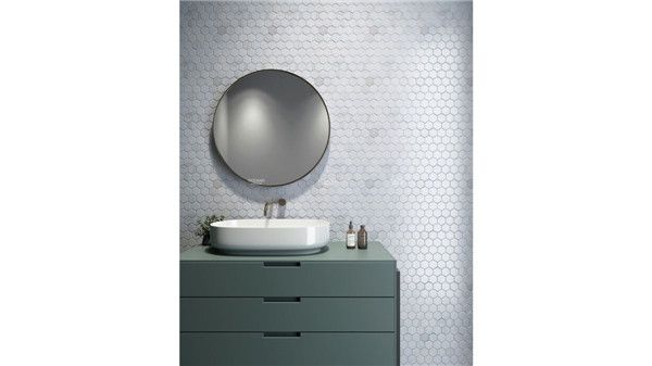 小六角风格的马赛克非常有灵性,因为它有灵动的形态,大面积使用也不会显得单调,再加上石材本身的色差和花纹变化,能够在简练的空间设计中突显出精致的审美。