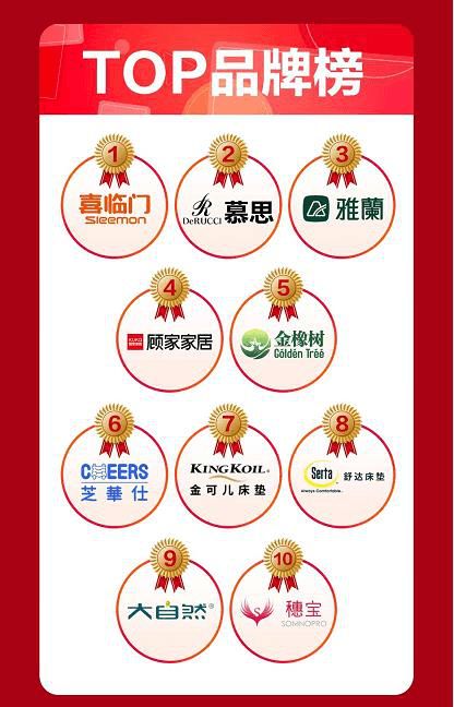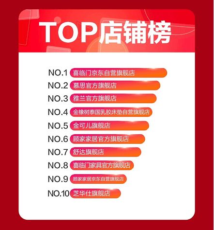 京东TOP1:品牌成交额、店铺成交额、单品成交额三榜均第一,连续8年双11开门红床垫类目销售top1!