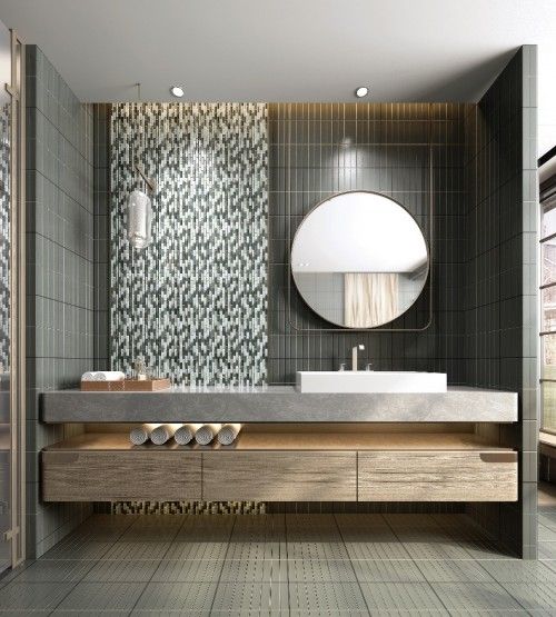 玻璃是马赛克最传统的材质,而且至今依然具有极强的生命力。结合现代几何设计,玻璃马赛克也可以非常时尚。