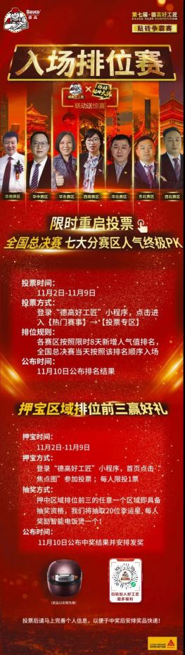 2020年11月10日,我们将通过“德高好工匠”平台公布20名幸运会员名单!