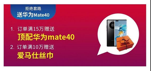 除此之外,活动期间订单满额更有最新华为mate40相送,你敢买,我就送!