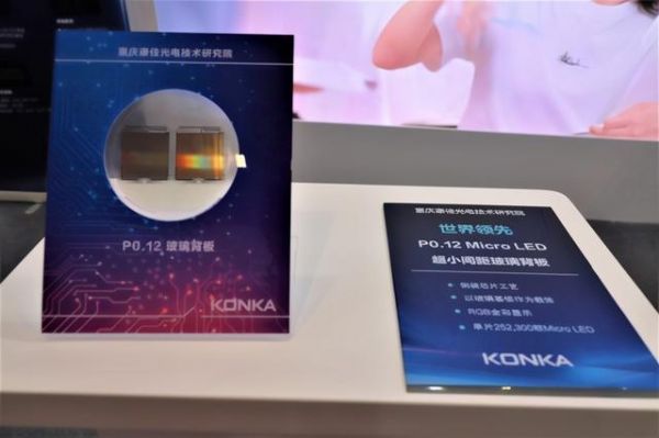 由于各项性能指标均优于LCD和OLED,不少行业巨头都把重点方向放到了Micro LED技术上。早在去年9月,康佳集团就在重庆成立光电技术研究院,专项致力于Micro LED研发、设计及生产,不到一年时间便正式投产。今年9月的中国国际光电博览会上,康佳展出的基于玻璃基板的显示屏新品已将点间距缩小到了P0.12,刷新了行业最小点间距。