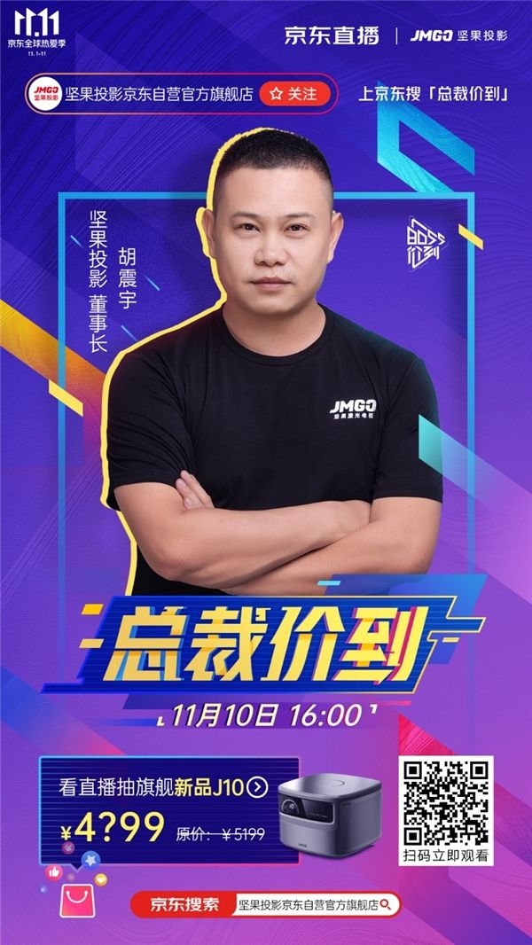 JMGO坚果投影总裁 “价”到京东直播 ,爆款多多福利满满点燃京东11.11