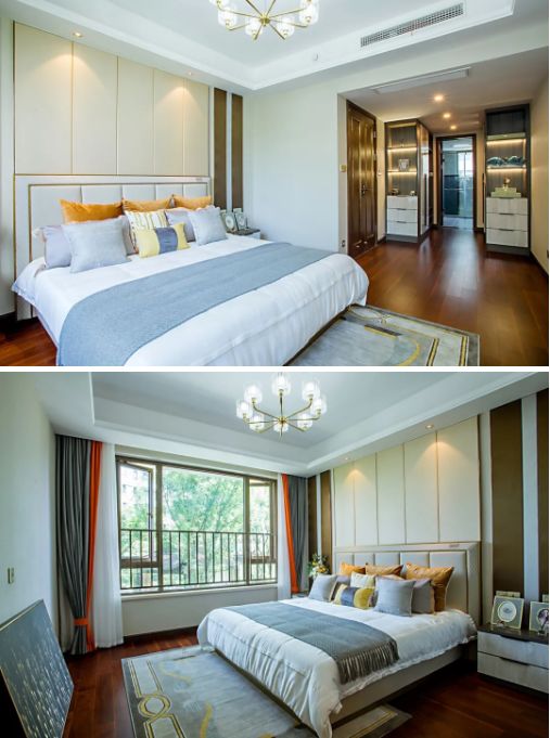 千川同款中式门使卧室的风格与居室整体风格相统一,作为休憩之地,卧室则更注重精致与细节。