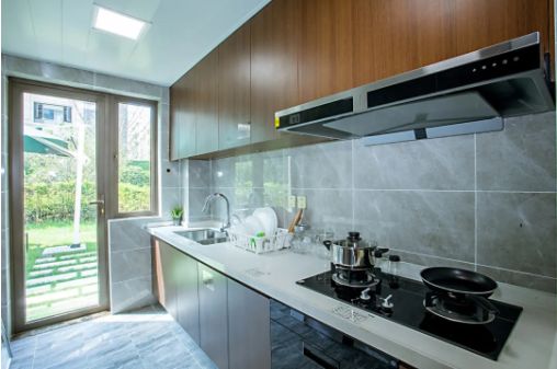 厨房充分利用了一楼的地势优势,一字型厨房,通透敞亮,将门直接开向户外,天然通风,厨房也有了自然的呼吸,使得厨房生活更加贴近自然,仿佛在郊外野炊一般。