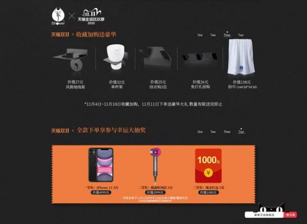 为感谢新老客户的支持,康健卫浴特推出"收藏加购送"的活动。凡是11月4日~11月10日收藏加购淋浴房的用户,只要在11月11日当天在店内下单即送豪华大礼——风筒绕线架、单杯架、挂衣钩、免打孔挂钩、浴巾通通免费送,数量有限、送完即止。