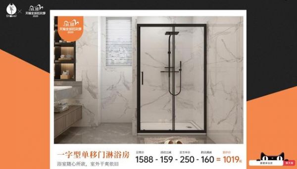 11月11日当天,天猫旗舰店"KJ卫浴旗舰店"的全场淋浴房产品低至8.2折起,最高可减599元!另外,店内产品还可以享受满300减40的官方购物津贴,上不封顶!店铺优惠券再叠加官方购物津贴,史无前例的优惠价错过了就要再等一年,省省省,一省到底!