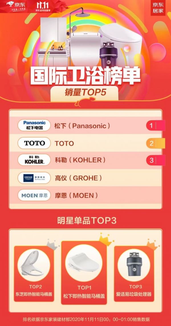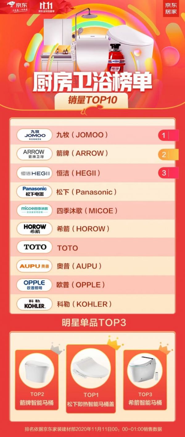京东11.11卫浴品牌榜出炉!智能马桶霸榜明星单品