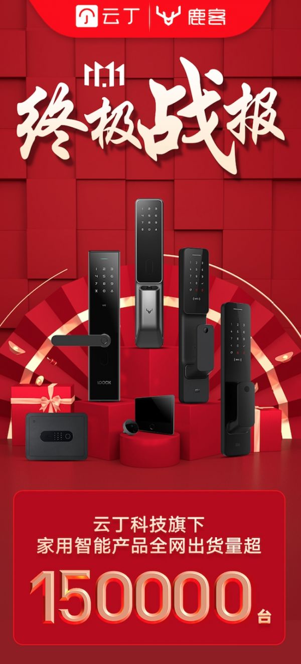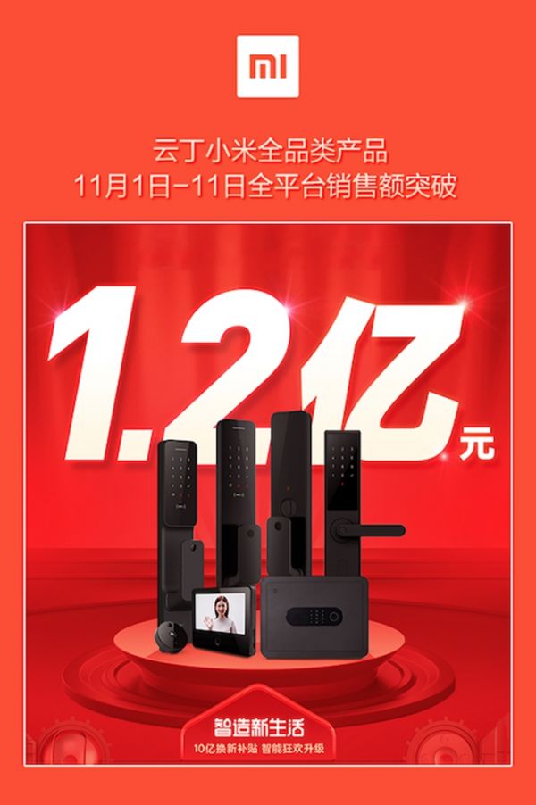 此外,云丁科技与小米合作的各款智能安防产品也表现不俗,包括小米全自动智能锁、小米智能锁推拉款和青春版、小米智能猫眼、小米智能保管箱在内的云丁小米全品类产品在双11期间全平台销售额突破1.2亿。