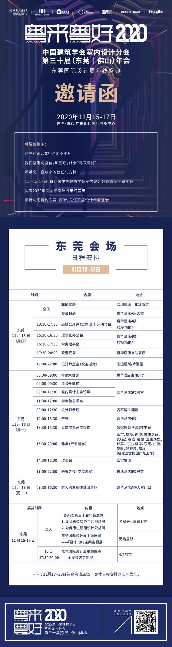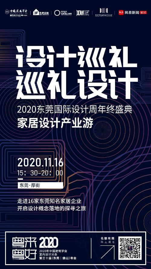 2020年即将进入倒计时,设计师朋友们不妨抓住年末的小尾巴,到东莞来一场特别的设计之旅。东莞国际设计周年终盛典暨中国建筑学会室内设计分会第三十届(东莞|佛山)年会开幕在即,11月15日让我们相约东莞厚街,不见不散!