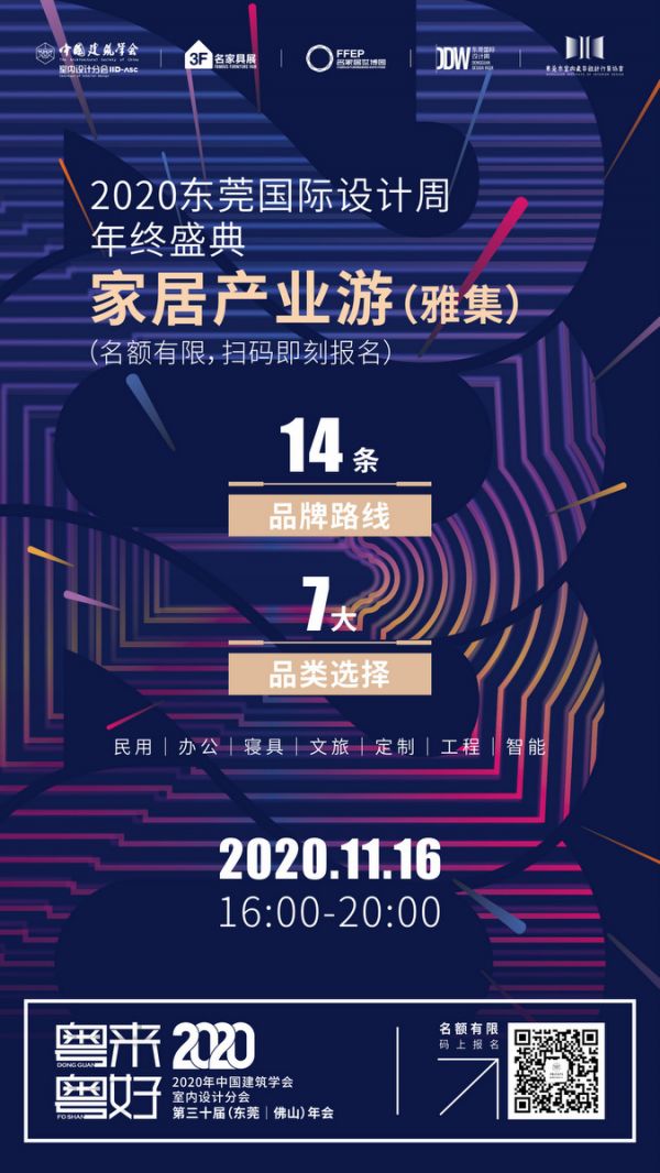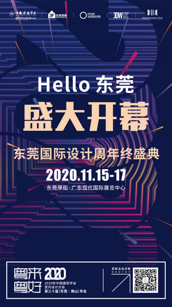 2020东莞国际设计周年终盛典暨中国建筑学会室内设计分会第三十届(东莞|佛山)年会今日正式开幕,更多精彩,11月15-17日,敬请期待吧!
