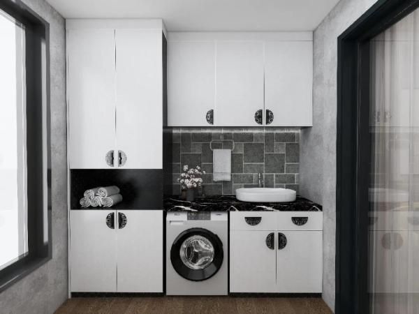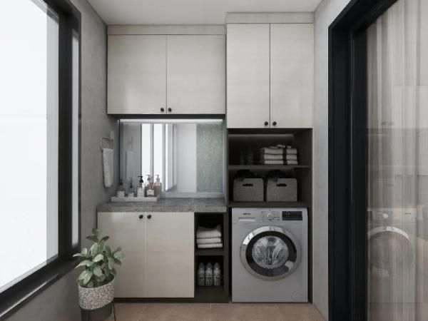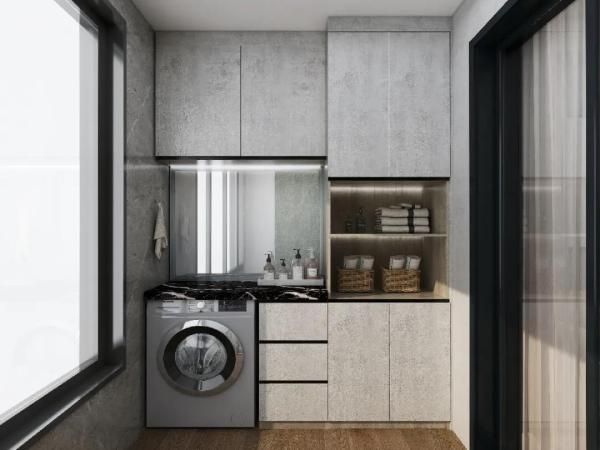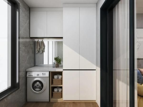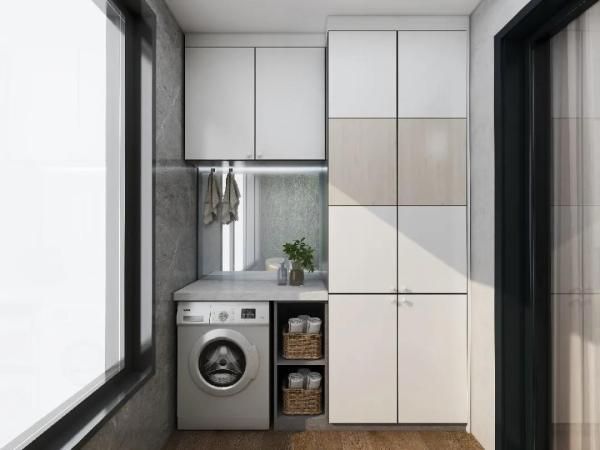 户型面积不大的话,洗衣、晾晒和收纳物品是阳台首选的功能,定制阳台柜来增加收纳空间,能兼顾实用性及美观性。