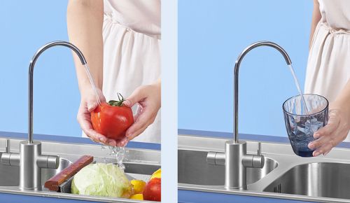 当然,与凡尔赛人的争锋只是偶尔行为,大多数时候,我们只需要把自己的生活收拾得便捷舒适就好,小米净水机H 600G就是这样一台务实的净水机。为满足家庭使用,它特意设计了两个出水口,左侧出水口是生活水,水体经过复合滤芯的过滤,有效吸附水中泥沙、铁锈、余氯等杂质,能够用来清洗瓜果、刷锅洗碗,但无需经过RO反渗透滤芯,有效延长滤芯寿命,降低使用成本。右侧是直饮水,经过最高级别的过滤,直接打开即饮。这样的设计既方便了家庭使用,又节约了费用。