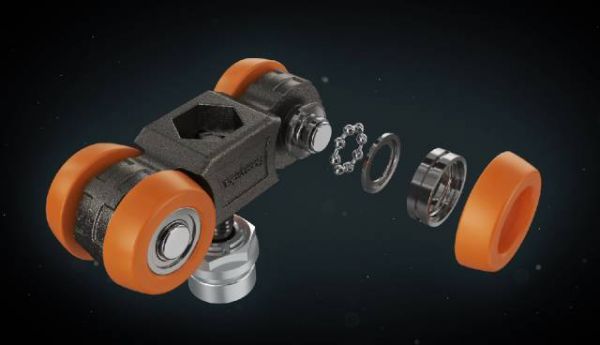 顶固吊轮,行业内独有的创新斜圆轮结构,轮子整体外轮廓呈圆弧面,在滑动过程中能自动校准轨道中央运行,确保轨道与门扇在安装出现偏差时,轮子仍能与轨道面紧密贴合,使得轮子受力均衡,推拉更平稳。