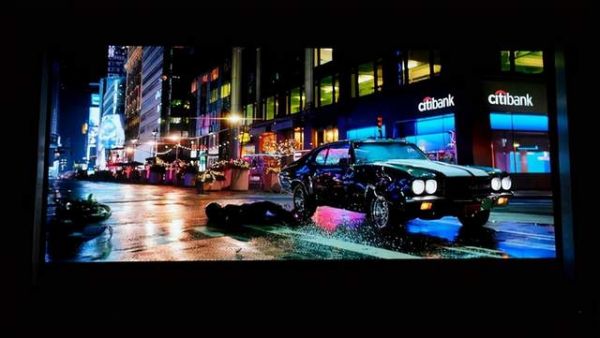 比如我们从上图中可以看到,当贝投影F3在播放蓝光视频的时候,就算是光线复杂的夜景环境下,也可以十分清晰地表现出地面上玻璃碎渣的反弹细节。并且在HDR10的加持下,画面中车身的反光以及车轮与轮毂的明暗细节都可以很好的展现出来,观赏效果十分惊艳。