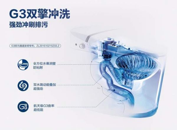 落座开启水幕润壁功能,使排泄物不易粘附,离座开启冲吸双擎冲洗功能,上下双水路完美汇合,使水动能叠加,全釉管道采用“航天级”G3曲率设计,超低阻管道使水流阻力倍减,水势更强劲,排污更干净。