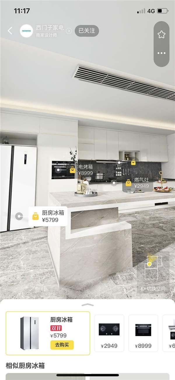 据统计,双11期间,家装家居行业使用3D虚拟展厅的品牌新增3000家,在消费电子行业,3D场景购技术也全面落地120个家电品牌,海尔、西门子的3D样板间1:1实景复刻线下体验店,实现用户浏览时长同比增长180%。