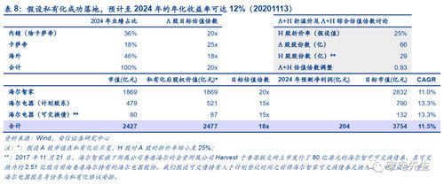 安信证券认为,若海尔电器的私有化方案成功落地,5年后海尔智家海外业务的经营利润率由2019年的3.4%提升7.0%,预计海尔智家2024年的净利润可达204亿元,2020~2024年净利润CAGR为16.9%。
