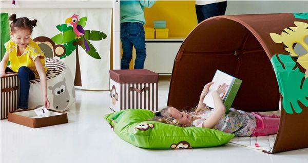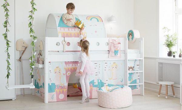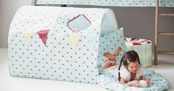 在儿童房有限的空间内,既要有帐篷、玩具甚至还要有树屋、滑梯,这会不会太奢侈呢?进口儿童家具为我们提供了新的设计思路。在地面独立放置一顶帐篷当然很占地方,如果这顶帐篷同时还能放置在床上,功能也就更多样了起来。进口儿童家具品牌FLEXA/芙莱莎的主题帐篷系列产品给孩子提供了玩乐的道具。孩子可以在坐着、躺着、趴着的状态下与帐篷展开互动,这里是孩子们喜爱的藏身之地,他们梦想中的童话城堡,激发他们与小伙伴探险的精神。将帐篷移动到床上,仿佛一个林间小屋,在里面和小伙伴聊天,阅读都是难得的惬意时光。