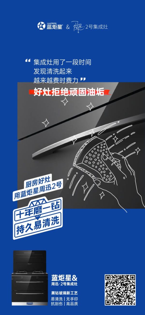 蓝炬星从未停止对于集成灶外观的技术探索,但对于蓝炬星而言,产品外观的价值并不在于风格的过分出挑,好的设计应该是为用户体验服务。这就是为什么蓝炬星amp;周迅·2号集成灶系列产品保留了原有的极简设计,在材质上另做文章的原因。