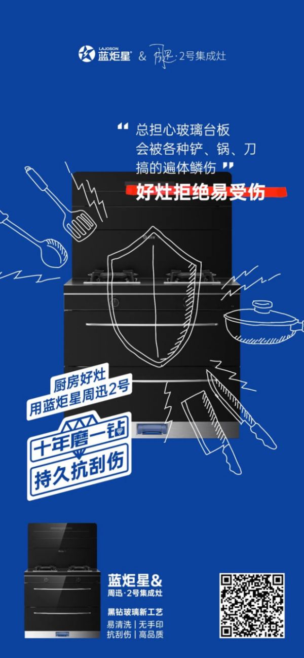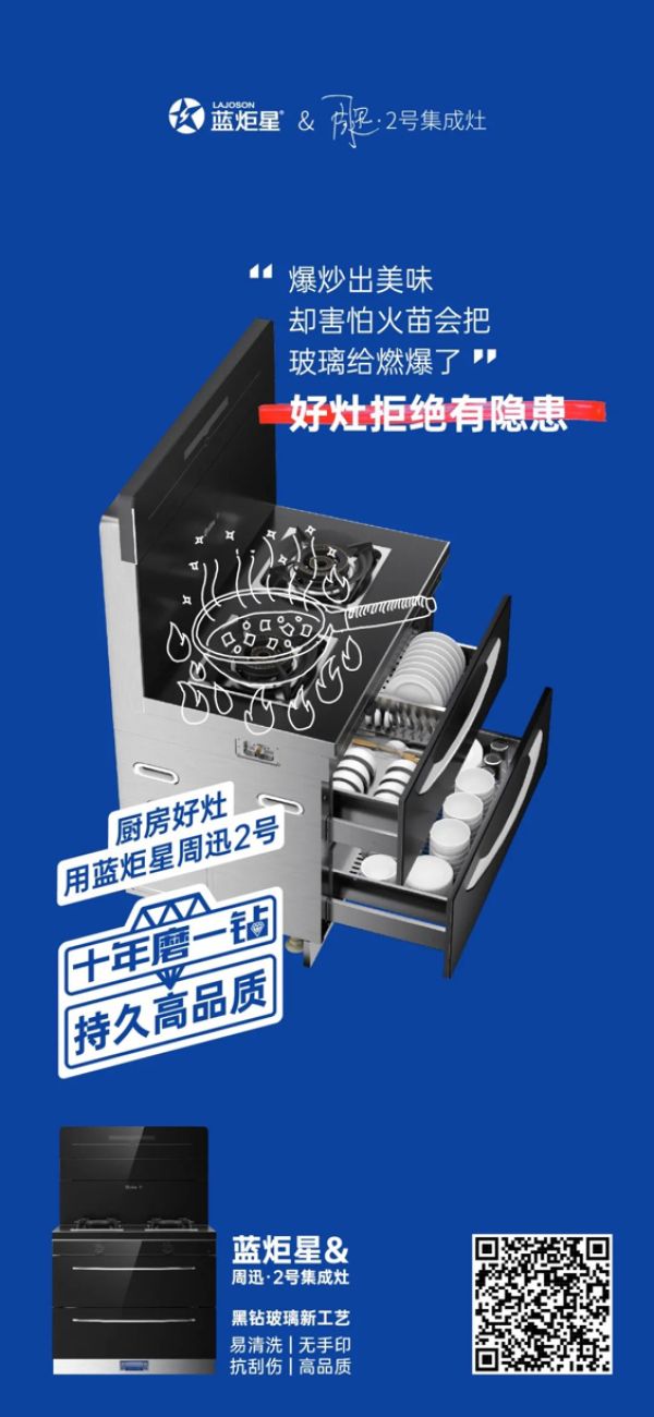 随着蓝炬星amp;周迅·2号集成灶系列产品的惊艳亮相,也让黑钻玻璃成为蓝炬星特有的身份标签。在外观技术领域,黑钻玻璃技术代表了当下先进工艺的极致,蓝炬星无疑做到了业界领先。