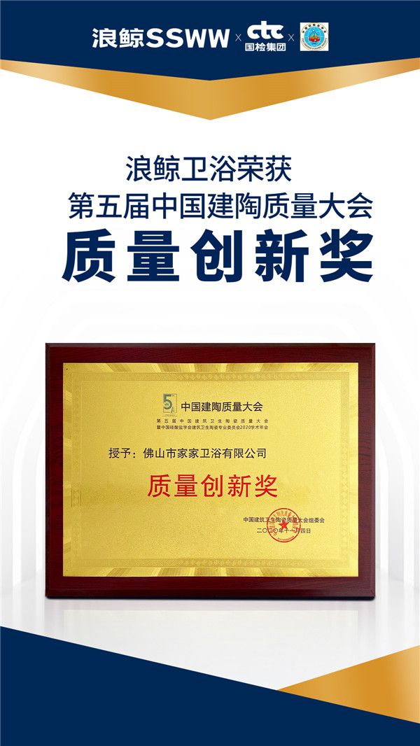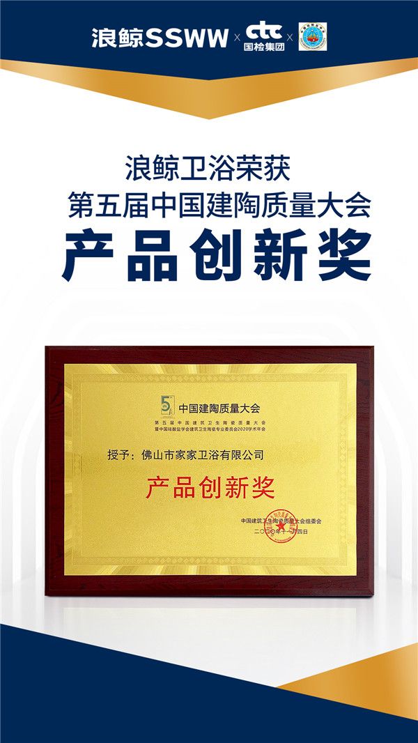 浪鲸卫浴荣获第五届中国建陶质量大会“产品创新奖”“质量创新奖”
