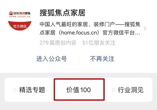 1.关注“搜狐焦点家居”微信公众号,点击公众号下方的“价值100”进入投票页面
