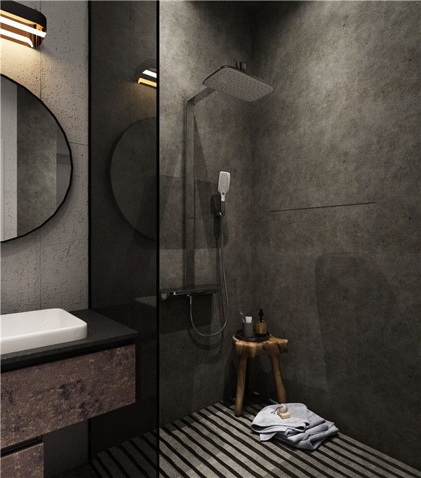 在硬朗酷炫的浪鲸都市工业风浴室里