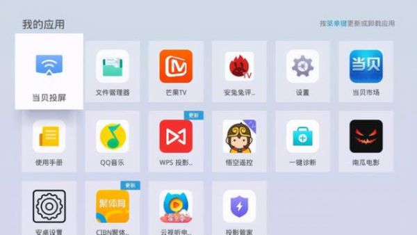 1.这是当贝独有的,打开当贝投影D3X,将所要投屏的安卓手机和投影仪连接到同一个网络,然后在我的应用里找到“当贝投屏”并打开