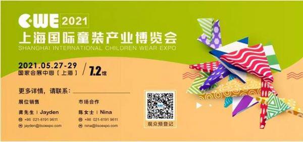 2021上海国际童装产业博览会(CWE2021)将于2021年5月27-29日在国家会展中心7.2号馆举办,本届展会展示面积预计达20,000平方米,展商数量近500家,专业观众20,000+人。展品涵盖童装品牌、童装成衣、童装面辅料、童装配饰、童鞋、童帽、婴童家纺、生产工艺、童装产业供应链,童装智慧门店等。同时展馆内设N场主题活动。打造中国童装商贸平台,整合各地童装行业协会资源,吸引优质的童装企业,聚势破局迎新。