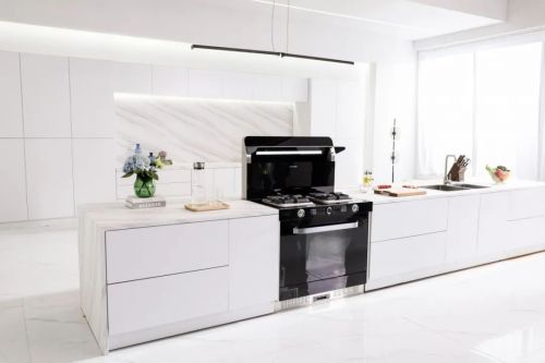 纯白场景典雅而高贵,展现品牌气质的同时呼应智能无烟厨房的主题。