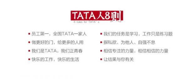 TATA木门文化之一“我们的任务是学习 工作只是练习题”是其重视员工成长的铿锵心声。